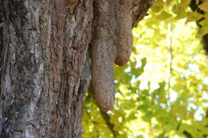 | たくさん垂下する気根(空気中に出る根)を乳房に見立て、「乳イチョウ」とも呼ばれている。 | |