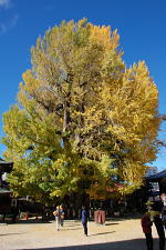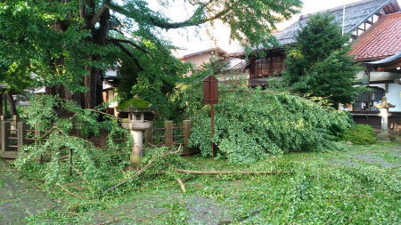 | 本年度は、9月4日の21号台風で甚大な被害を受け、風で折れて落下した大きな枝などは片づけられたのですが、上部で折れたり皮一枚で引っかかった状態で残ってる枝はそのままになってるのが多く見られます。 例年まだ多くの葉に覆われてるイチョウは、多くの枝か折れ幹や枝がむき出し状態で寂しげです。 特に被害が大きかった西側は、太い枝が折れたので幹が丸見え状態です。 国分寺大銀杏は、1953年(昭和28年)3月31日に、国の天然記念物に指定されているため 文化財保護法(第80条)において,「その現状を変更し,又はその保存に影響を及ぼす行為をしようとするときは,文化庁長官の許可を受けなければならない.」と定められているので、手の付けれないところもあり、立入禁止地域もありますので十分にご注意ください。 ■2018年9月5日 21号台風被害の早朝 ![]() ■2018年11月17日の境内 ![]() ■2018年度イチョウのようす(立冬:11月7日 小雪:11月22日) |